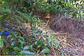 Satin bowerbirds are not in the least finicky in their food preferences, and have taken extremely readily to the numerous plants introduced since European settlement. Indeed, they are a major dispersal agent for a number of weedy plants, such as camphor laurel, the European olive and various species of privet.[6] They are also often persecuted by horticulturalists because they frequently raid fruit and vegetable crops. Satin bowerbirds are aggressive when foraging, frequently attempting to displace other birds from fruit trees.[5]