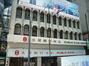 Public Bank (Hong Kong) Limited (Chinese: 大眾銀行(香港)有限公司) is a licensed bank in Hong Kong. Originally named Asia Commercial Bank Limited and owned by Asia Financial Holdings Limited (SEHK: 662, [1]), it was acquired by Public Financial Holdings Limited (SEHK: 626, a Public Bank Berhad subsidiary, formerly JCG Financial Holdings Limited, [2]), completed on 30 May, 2006. It was subsequently renamed on 30 June, 2006.