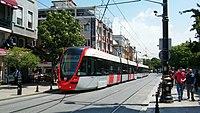 The modern tram consists of lines T1, T4 and T5, initially operated with 55 low-floor Bombardier Flexity Swift and 32 Alstom Citadis.[8] The line T4 was opened in 2007 between Edirnekapı and Mescid-i Selam. There are 22 stations and length is 15,3 km . Since March 2009, the line works between Topkapı and Hapibler[9] Service is operated with LRT vehicles built by SGP in 1989. As of 2012, daily ridership was 380 journey and 100,000 passenger.[9]
