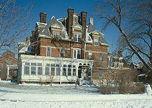 Originally built beyond the Chicago city limits, it is now in what is the Pullman community area of Chicago, the district includes the Pullman factory and also the Hotel Florence, named after George Pullman's daughter. Also within the district is the A. Philip Randolph Pullman Porter Museum, named for the prominent labor and civil rights leader A. Philip Randolph, which recognizes and explores African American labor history.[4] Parts of the site, in recent decades have been owned by the Illinois Historic Preservation Agency prior to gifting them to the federal government.[5][6] Additional grounds remain owned by the state, as The Pullman State Historic Site. [7] The Pullman District, including the national monument, state historic site, and private homes is east of Cottage Grove Avenue, from East 103rd St. to East 115th St.[8] It was named a Chicago Landmark district on October 16, 1972.[2] It was listed on the National Register of Historic Places on October 8, 1969 and declared a National Historic Landmark on December 30, 1970.[9]