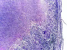 Tuberculosis is classified as one of the granulomatous inflammatory diseases. Macrophages, epithelioid cells, T lymphocytes, B lymphocytes, and fibroblasts aggregate to form granulomas, with lymphocytes surrounding the infected macrophages. When other macrophages attack the infected macrophage, they fuse together to form a giant multinucleated cell in the alveolar lumen. The granuloma may prevent dissemination of the mycobacteria and provide a local environment for interaction of cells of the immune system.[63] However, more recent evidence suggests that the bacteria use the granulomas to avoid destruction by the host's immune system. Macrophages and dendritic cells in the granulomas are unable to present antigen to lymphocytes; thus the immune response is suppressed.[64] Bacteria inside the granuloma can become dormant, resulting in latent infection. Another feature of the granulomas is the development of abnormal cell death (necrosis) in the center of tubercles. To the naked eye, this has the texture of soft, white cheese and is termed caseous necrosis.[63]