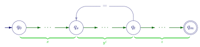 - ^ John E. Hopcroft & Jeffrey D. Ullman (1979). Introduction to Automata Theory, Languages, and Computation. Reading/MA: Addison-Wesley. ISBN 978-0-201-02988-8. Here: p. 72, Exercise 3.2 (which give a slightly less general version, requiring |w|=p) and 3.3
