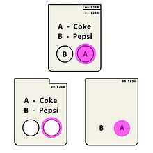 As an example, consider a two candidate election between Coke and Pepsi, as illustrated in the preceding diagram. The order of the letters beside the candidates' names could be A and then B, or B and then A. We will call this ordering , and let =0 for the former ordering and =1 for the latter. Therefore,