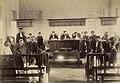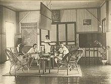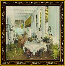 In the colonial age, the word came to be used in British India and elsewhere in the tropical and subtropical world for a large swinging fan, fixed to the ceiling, and pulled by a coolie, called the punkah wallah in India, during hot weather.[1] To cover a larger area, such as in an office or a courthouse, a number of punkahs could be connected together by strings so that they would swing in unison. The material used could range from utilitarian rattan to expensive fabrics. The date of this invention is not known, but it was familiar to the Arabs as early as the 8th century.[1] It was not commonly used in India before the end of the 18th century.[1]