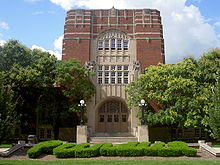 Part of White's plan to distinguish Purdue from classical universities included a controversial attempt to ban fraternities, which was ultimately overturned by the Indiana Supreme Court, leading to White's resignation.[16] The next president, James H. Smart, is remembered for his call in 1894 to rebuild the original Heavilon Hall "one brick higher" after it had been destroyed by a fire.[17]