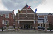 West of the Elliott Hall of Music is the Armory Building. The Armory Building was rebuilt in 1918 after a fire and houses the university's ROTC programs and other clubs.[37] In March 2019, university president Mitch Daniels described a proposal to repurpose the Armory Building, suggesting the space may be used for residential dining, retail, or classrooms but later said no changes would be made.[38][39]
