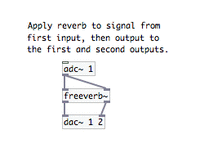 - The second patch applies reverberation to the incoming signal from channel 1, then emits it on channels 1 and 2.