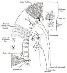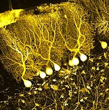 Purkinje cells, or Purkinje neurons, are a class of GABAergic inhibitory neurons located in the cerebellum.[2] They are named after their discoverer, Czech anatomist Jan Evangelista Purkyně, who characterized the cells in 1839.