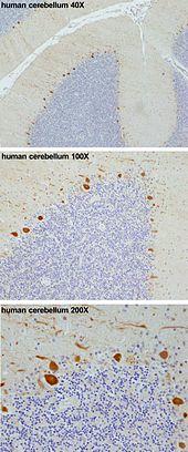 - ^ a b Mitoma H, Adhikari K, Aeschlimann D, Chattopadhyay P, Hadjivassiliou M, Hampe CS, et al. (2016). "Consensus Paper: Neuroimmune Mechanisms of Cerebellar Ataxias". Cerebellum (Review). 15 (2): 213–32. doi:10.1007/s12311-015-0664-x. PMC 4591117. PMID 25823827.