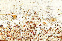 - ^ Mavroudis, IA; Fotiou, DF; Adipepe, LF; Manani, MG; Njau, SD; Psaroulis, D; Costa, VG; Baloyannis, SJ (November 2010). "Morphological changes of the human purkinje cells and deposition of neuritic plaques and neurofibrillary tangles on the cerebellar cortex of Alzheimer's disease". American Journal of Alzheimer's Disease & Other Dementias. 25 (7): 585–91. doi:10.1177/1533317510382892. PMID 20870670.