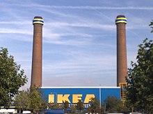 The IKEA in Croydon is a 23,000 m² furniture store which opened in 1992, on the site of Croydon "B" Power Station.[2] The old power station chimneys, with the addition of illuminated bands in the store's blue and yellow colours, were retained as a prominent advertisement. The store was revamped during 2006, to make it the largest IKEA in Britain: it was re launched in May 2006, at a ceremony attended by Mayor Maggie Mansell, and the ambassador of Sweden, Stefan Karlsson.