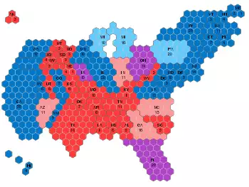 Cartograms developed by Gastner, Shalizi, and Newman at the University of Michigan provide another way to depict election results,[28] which change from a red-blue paradigm to one of shades of purple.[29]