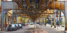 In 2005, the CTA embarked on a project to replace six deteriorating viaducts on the Evanston branch of the Purple Line. The poor condition of the century-old viaducts forced the implementation of permanent slow zones and were a point of contention for many Evanston politicians. They claimed CTA had secured funds and promised to begin replacing the viaducts starting in 1999, but had diverted the funds to other projects. The CTA responded that it only provided projected uses and had not committed the money to any specific purpose.[30] The Main Street viaduct was completely replaced over the weekend of November 12–13, 2005, requiring the temporary shutdown of the Purple Line. Construction was completed by the Monday morning rush hour.[31] The Church Street viaduct was replaced next; preliminary work at that location began in July 2006[32] and the new viaduct was installed in late October 2006 during another weekend closure of the Purple Line.[33]