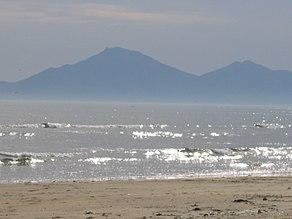 Busan is located on the Southeastern tip of the Korean Peninsula. It is located on the coast, which determined the development of the whole city itself. It is the nearest of South Korea's six largest cities to Japan. The distance as the crow flies from Busan to Tsushima Island, Nagasaki Prefecture, Japan, is about 49.5 km (31 mi), to Fukuoka, Japan, about 180 km (112 mi), and by contrast, to Seoul about 314 km (195 mi). Busan borders low mountains on the north and west, and the seas on the south and east. The Nakdong River Delta is located on the west side of the city, and Geumjeongsan, the highest mountain in the city, on the north. The Nakdong River, South Korea's longest river, flows through the west and empties into the Korea Strait. The southeastern region, called Yeongnam in Korea, encompasses both Gyeongsang Provinces and 3 metropolitan cities of Busan, Daegu and Ulsan. Ulsan lies northeast of Busan. Combined population exceeds 13 million.