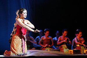 Director and writer Zahim Albakri was influenced by the musicals of Rodgers and Hammerstein, opting for "rousing numbers, a full chorus performing lavish song and dance spectacles, and colourful costumes and props".[1] Composer Dick Lee found inspiration in Bali, Java and among his own Peranakan heritage. A live cast recording of the songs from the show was released on CD in August 2006. A few songs were omitted from the album, all of them featuring the vocals of Sukania Venugopal.