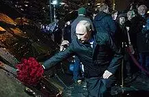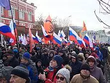 After the parliamentary elections on 4 December 2011, tens of thousands of Russians engaged in protests against alleged electoral fraud, the largest protests in Putin's time. Protesters criticized Putin and United Russia and demanded annulment of the election results.[114] Those protests sparked the fear of a colour revolution in society.[115] Putin allegedly organized a number of paramilitary groups loyal to himself and to the United Russia party in the period between 2005 and 2012.[116]