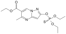 A related use is in pyrazolopyrimidine organothiophosphate pesticides including chlorprazophos (insecticide) and pyrazophos (fungicide, insecticide).
