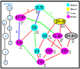 | Th | [3+,4] | 3*2 | m3 | 2 | A4×2 | 24 | 1 | ||