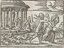 In Greek mythology, Pyrrha (/ˈpɪrə/; Ancient Greek: Πύρρα) was the daughter of Epimetheus and Pandora and wife of Deucalion of whom she had three sons, Hellen, Amphictyon, Orestheus; and three daughters Protogeneia, Pandora II and Thyia. According to some accounts, Hellen was credited to be born from Pyrrha's union with Zeus.[1]