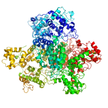 - ^ Arjunan P, Nemeria N, Brunskill A, Chandrasekhar K, Sax M, Yan Y, et al. (April 2002). "Structure of the pyruvate dehydrogenase multienzyme complex E1 component from Escherichia coli at 1.85 A resolution". Biochemistry. 41 (16): 5213–21. doi:10.1021/bi0118557. PMID 11955070.