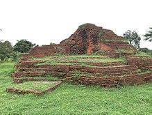 Sri Ksetra or Thaye Khittaya (သရေခေတ္တရာ [θəjè kʰɪʔtəjà]; lit., "Field of Fortune"[24] or "Field of Glory"[21]), located 8|km|abbr=on}} southeast of Prome (Pyay) at present-day Hmawza village,[25] was the last and southernmost Pyu capital. The city was founded between the 5th and 7th centuries,[16]:62–63,77although during two of the recent excavations, January to February 2015 and December 2015 to February 2016, led by Janice Stargardt in Yahanda mound at Sri Ksetra, sherds stamped with Buddhist motifs were found, dated from c. 340 +/- 30 CE.[26] and Pyu culture cremation burials around 270 +/- 30 CE.[26] Sri Ksetra likely overtook Halin as the premier Pyu city by the 7th or 8th century, and retained that status until the Mranma arrived in the 9th century. The city was home to at least two dynasties, and maybe three. The first dynasty, called the Vikrama Dynasty, is believed to have launched the Pyu calendar, which later became the Burmese calendar, on 22 March 638.[2] The second dynasty was founded by King Duttabaung on 25 March 739 (11th waxing of Tagu 101 ME).[27]