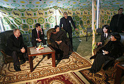 Along with other nomadic Bedouins, the family were illiterate and kept no birth records.[19] Many biographers have used 7 June; however, his birthday is not known with certainty and sources have set it in 1942 or the spring of 1943,[19] although his biographers David Blundy and Andrew Lycett noted that it could have been pre-1940.[20] His parents' only surviving son, he had three older sisters.[19] Gaddafi's upbringing in Bedouin culture influenced his personal tastes for the rest of his life; he preferred the desert over the city and would retreat there to meditate.[21]