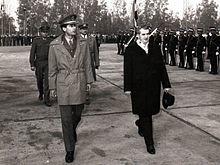 After the 1969 coup, representatives of the Four Powers—France, the United Kingdom, the United States, and the Soviet Union—were called to meet RCC representatives.[120] The UK and the US quickly extended diplomatic recognition, hoping to secure the position of their military bases in Libya and fearing further instability. Hoping to ingratiate themselves with Gaddafi, in 1970 the US informed him of at least one planned counter-coup.[121] Such attempts to form a working relationship with the RCC failed; Gaddafi was determined to reassert national sovereignty and expunge what he described as foreign colonial and imperialist influences. His administration insisted that the US and the UK remove their military bases from Libya, with Gaddafi proclaiming that "the armed forces which rose to express the people's revolution [will not] tolerate living in their shacks while the bases of imperialism exist in Libyan territory." The British left in March and the Americans in June 1970.[122]