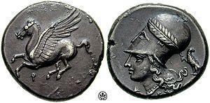 The koppa was used as a symbol for the city of Corinth, which had the early spelling of Ϙόρινθος.