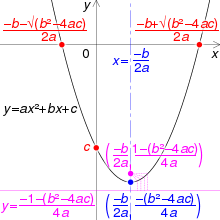 Some sources, particularly older ones, use alternative parameterizations of the quadratic equation such as ax2 + 2bx + c = 0 or ax2 − 2bx + c = 0 ,[7] where b has a magnitude one half of the more common one, possibly with opposite sign. These result in slightly different forms for the solution, but are otherwise equivalent.