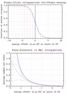 Particle statistics is a particular description of multiple particles in statistical mechanics. A key prerequisite concept is that of a statistical ensemble (an idealization comprising the state space of possible states of a system, each labeled with a probability) that emphasizes properties of a large system as a whole at the expense of knowledge about parameters of separate particles. When an ensemble describes a system of particles with similar properties, their number is called the particle number and usually denoted by N.