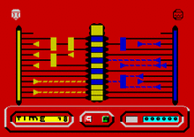 The same game concept can be seen in Ranarama (1987), a game from the same author that appeared between Quazatron and Magnetron.