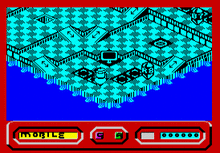 Quazatron was a Spectrum version of Paradroid, which was written by Graftgold partner Andrew Braybrook in 1985. Although a direct conversion was considered, it was felt that the Spectrum couldn't handle screen-scrolling as smoothly as the Commodore 64. However, Steve Turner had been working on an isometric landscape engine for the Spectrum called Ziggurat and decided to use this with the Paradroid game mechanics, control system and patrol paths.[4]