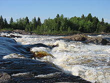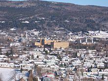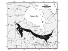 More than 95% of Quebec's territory lies within the Canadian Shield.[39] It is generally a quite flat and exposed mountainous terrain interspersed with higher points such as the Laurentian Mountains in southern Quebec, the Otish Mountains in central Quebec and the Torngat Mountains near Ungava Bay. The topography of the Shield has been shaped by glaciers from the successive ice ages, which explains the glacial deposits of boulders, gravel and sand, and by sea water and post-glacial lakes that left behind thick deposits of clay in parts of the Shield. The Canadian Shield also has a complex hydrological network of perhaps a million lakes, bogs, streams and rivers. It is rich in the forestry, mineral and hydro-electric resources that are a mainstay of the Quebec economy. Primary industries sustain small cities in regions of Abitibi-Témiscamingue, Saguenay–Lac-Saint-Jean, and Côte-Nord.