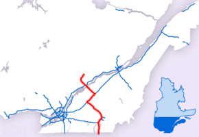 Autoroute 55 (also called Autoroute de l'Énergie north of the Autoroute 20 and Autoroute Joseph-Armand Bombardier south of it) is an important north–south Autoroute and the only one running in that direction in central Quebec. It is the longest north-south Autoroute, beginning as the continuation of I-91 at the Canada–United States border near Stanstead and continuing to Shawinigan, where it downgrades to Route 155. The total length of A-55 is currently 247 km (153.5 mi) long, including concurrencies with Autoroute 10, Autoroute 20 and Autoroute 40.