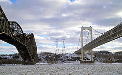 Two bridges (the Quebec Bridge and Pierre Laporte Bridge) and a ferry service connect the city with Lévis and its suburbs along the south shore of the Saint Lawrence River. The Orleans Island Bridge links Quebec City with pastoral Orleans Island.