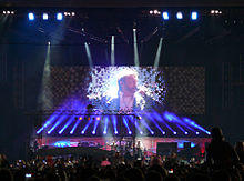 In 2016, the group embarked across Europe and Asia on the Queen + Adam Lambert 2016 Summer Festival Tour. This included closing the Isle of Wight Festival in England on 12 June where they performed "Who Wants to Live Forever" as a tribute to the victims of the mass shooting at a gay nightclub in Orlando, Florida earlier that day.[291] On 12 September they performed at the Park Hayarkon in Tel-Aviv, Israel for the first time in front of 58,000 people.[292] As part of the Queen + Adam Lambert Tour 2017–2018, the band toured North America in the summer of 2017, toured Europe in late 2017, before playing dates in Australia and New Zealand in February and March 2018.[293] On 24 February 2019, Queen + Adam Lambert opened the 91st Academy Awards ceremony held at the Dolby Theatre in Hollywood, Los Angeles.[294] In July 2019 they embarked on the North American leg of The Rhapsody Tour, with the dates sold out in April.[295] They toured Japan and South Korea in January 2020 followed by Australia and New Zealand the following month.[296][297][298] On 16 February the band reprised their Live Aid set for the first time in 35 years at the Fire Fight Australia concert at ANZ Stadium in Sydney to raise money for the 2019–20 Australian bushfire crisis.[299]
