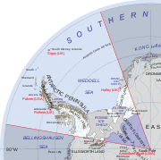 Queen Elizabeth Land is portion of mainland Antarctica named by the government of the United Kingdom and claimed as part of the British Antarctic Territory, which is the largest of the 14 British Overseas Territories. Situated south of Weddell Sea and between longitudes 20°W and 80°W, stretching from Filchner-Ronne Ice Shelf to the South Pole.[1] The boundary against Zumberge Coast of Ellsworth Land to the West and Northwest is Hercules Inlet. To the Northeast, Circle_of_latitude 82°S is the dividing line against Coats Land. The area of Queen Elizabeth Land was unnamed until 2012, though most of it was unofficially known as Edith Ronne Land in 1947–68[2] and includes areas claimed by the United Kingdom, Chile and Argentina.