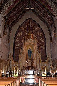 The church, designed in a Neo-Gothic style by Meyer and Cook, was completed in 1960. The magnificent, cathedral-like church was raised to the dignity of a basilica by Pope John XXIII on March 26, 1962. The large window over the choir loft features eight different shrines of the Virgin Mary: Our Lady of Czestochowa, Our Lady of Knock, Our Lady of Einsiedeln, Our Lady of the Snows, Our Lady of La Salette, Our Lady of Guadalupe, Our Lady of Lourdes and Our Lady of Fatima. This display alludes to the theme of the universality of the Catholic Church by highlighting that although these shrines are particular to a certain country or culture, the Cult of the Virgin Mary bridges over all these barriers, bringing together the different ethnic groups living in Sauganash area of Forest Glen. The original circa 1930s organ was replaced in 2006 due to its poor condition from age and an act of vandalism in the 1970s. The new instrument is a three-manual, 60-rank opus by Berghaus Pipe Organ Builders of Bellwood, Illinois.[1]
