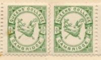 Queens' was one of only three Cambridge colleges (the others being Selwyn and St John's) to issue its own stamps. From 1883 the college issued its own stamps to be sold to members of the college so that they could pre-pay the cost of a college messenger delivering their mail. This was instead of placing charges for deliveries on to members' accounts, to be paid at the end of each term.