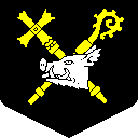 These are not the official arms of the College, but, rather, a badge. The silver boar's head was the badge of Richard III. The earliest evidence of the college using a boar's head as a symbol is from 1544. The gold cross stands for St Margaret, and the gold crozier for St Bernard, the two patron saints of Queens' College. There is also a suggestion that the saltire arrangement of these (like the St Andrew's Cross) is an allusion to Andrew Dokett, the first president of Queens'. Today, this badge is widely used by college clubs, and also appears in connection with food or dining.
