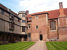 President's Lodge of Queens' is the oldest building on the river at Cambridge (ca. 1460).[9] The President's Lodge sits in Cloister Court: the Cloister walks were erected in the 1490s to connect the Old Court of 1448/9 with the riverside buildings of the 1460s, thus forming the court now known as Cloister Court. Essex Building, in the corner of the court, was erected 1756–60, is so named after its builder, James Essex the Younger (1722–1784), a local carpenter who had earlier erected the wooden bridge.