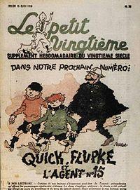 The exploits of Quick and Flupke (French: Quick et Flupke, gamins de Bruxelles) is a comics series by Belgian cartoonist Hergé. Serialised weekly from January 1930 to 1940 in Le Petit Vingtième, the children's supplement of conservative Belgian newspaper Le Vingtième Siècle ("The Twentieth Century"), the series ran alongside Hergé's better known The Adventures of Tintin.