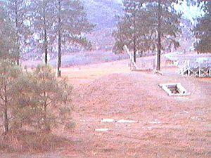 Hudson's Bay Flats is the old location of a site called Fort Chilcotin. The Fort Chilcotin site contains a number of quiggly holes.[1] The Thompson River between Pritchard and Kamloops also has quiggly holes.[2] Indigenous artifacts have been recovered from quiggly holes including arrowheads and scrapers. Some rockhounds believe digging around quiggly holes looking for artifacts destroys what little historical record remains.[3]
