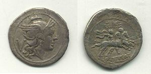 The quinarius (plural: quinarii[1]) was a small silver Roman coin valued at half a denarius.