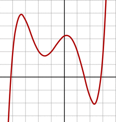 Because they have an odd degree, normal quintic functions appear similar to normal cubic functions when graphed, except they may possess an additional local maximum and local minimum each. The derivative of a quintic function is a quartic function.