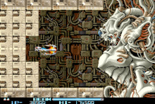The game consists of six levels. Though an ending screen is displayed after the player finishes all of the levels once through, the game's true ending is only displayed after the player completes the levels a second time under increased difficulty. The game starts off in a ruined Bydo base, and continues through a giant cave where waterfalls can prevent the ship from progressing. The player battles several huge battleships in the third level, and the terrain constantly shifts around during the fourth and fifth levels. The final level takes place on the Bydo home planet, where the alien organisms are cloned and mass-produced.