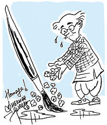 Laxman also created a popular mascot for the Asian Paints Ltd group called "Gattu" in 1954.[20][21] He also wrote a few novels, the first one of which was titled The Hotel Riviera.[22] His cartoons have appeared in Hindi films such as Mr. & Mrs. '55 and a Tamil film Kamaraj. His creations also include the sketches drawn for the television adaptation of Malgudi Days[23] which was written by his elder brother R. K. Narayan, directed by Shankar Nag, and a Konkan coast based Hindi sitcom, Wagle Ki Duniya. Laxman also drew caricatures of David Low, T.S. Eliot, Bertrand Russell, J.B. Priestly and Graham Greene.[22]