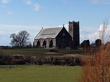 By October 1941, RAF Andreas was ready to receive the first of No. 457 Squadron RAAF (457 Sqn)[8] Spitfires from RAF Jurby as a prelude to working up to operational efficiency.[9] This work-up would take six months, however the transfer of 457 Sqn's ground crew and administrative staff brought welcome relief to the congestion at Jurby.[10] During this work-up period the Air Ministry insisted that the height of Andreas church tower be reduced, as it was a hazard, and in line with the southern end of the main runway.[11] The church tower was originally 120 feet (37 m) high, and the most striking feature of the island's northern plain, being visible throughout the parish.[12]