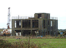 By the spring of 1941 the airfield, to be built to the full specification of an operational fighter station, was beginning to take shape. The main NE/SW runway was 1,100 yards (1,000 m) long and 50 yards (46 m) wide and was obviously meant to take larger aircraft than fighters.[4] From the perimeter track there was access to the flight dispersals area in which a total of 24 blast pens (or E pens) were built, half to provide protection for the fighters while larger ones were for twin-engined aircraft. Considerable thought had also gone into the airfield's defences, with the whole area being surrounded by 5-foot-high (1.5 m) roller concertina barbed wire, with gaps located at the main entrance and crash gates[5] and by a tarmacadamed perimeter track over three miles in distance.[6]