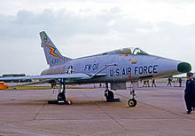 In June 1955 the 20th FBW started receiving the F-84F "Thunderstreak" in addition to its F-84Ds and F-84Gs. The F-84G was phased out by June 1955, with the aircraft being transferred to Allied nations in Europe and the Middle East. The 20th flew the F-84F until 16 June 1957 when the conversion to the North American F-100D and F-100F "Super Sabres" began. The F-100 remained the primary aircraft at RAF Wethersfield until 1970.